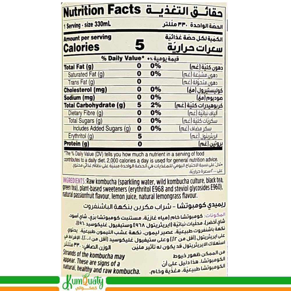 نكهة باشن فروت المميزة: مزيج مثالي من الفاكهة الاستوائية الطازجة مع طعم الكمبوتشا المنعش.